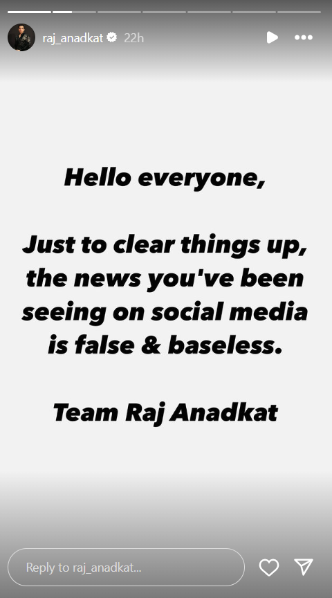 इसके बाद हमने यह जानने का प्रयास किया कि क्या सच में मुनमुन दत्ता और राज अनादकट की सगाई हुई है. इसके लिए हमने दोनों अभिनेताओं के सोशल मीडिया पेजों को खंगाला. इस प्रक्रिया में हमें दोनों अभिनेताओं के इंस्टाग्राम पेजों पर शेयर की गई स्टोरीज प्राप्त हुई, जिनमें दोनों ने ही सगाई की इस खबर का खंडन किया है.
