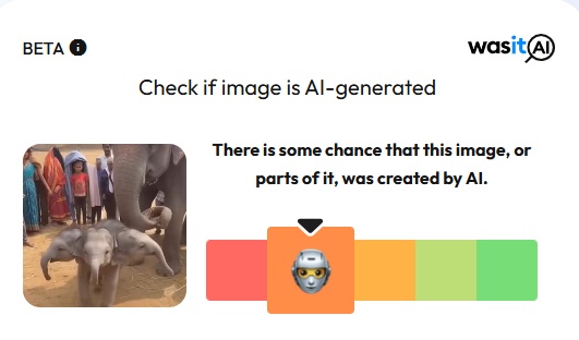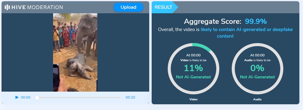 Newschecker ran a screengrab of the video past WasitAI, which said, “There is some chance that this image, or parts of it, was created by AI.” We then ran the video past Hive Moderation, an AI-content detection tool, which found it 99.9% likely to contain AI-generated or deepfake content. Similarly, we ran the video past SightEngine, which found it 99% likely AI-generated, further confirming the video is not real.