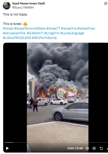 Video claiming to show the wildfires devastating Israel.