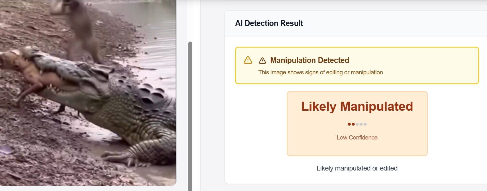 We also noticed the overly smooth texture of the water body in the video, along with the lack of detail and the distorted hands of the monkey in several frames, all signs pointing towards AI-generated media.