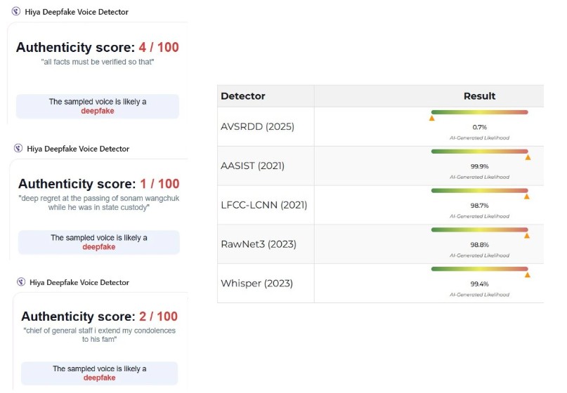 - Deepfake-o-meter: 4 out of 5 detectors indicated high AI likelihood