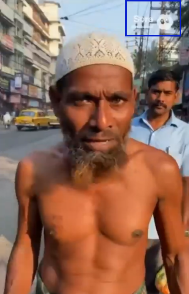 ভাইরাল ভিডিয়োটির উপরের ডানদিকের কোণায় “SORA” ওয়াটারমার্কটি দেখতে পাওয়া যায়। যা OpenAI-এর একটি অংশ এবং AI ভিডিয়ো তৈরি করে।