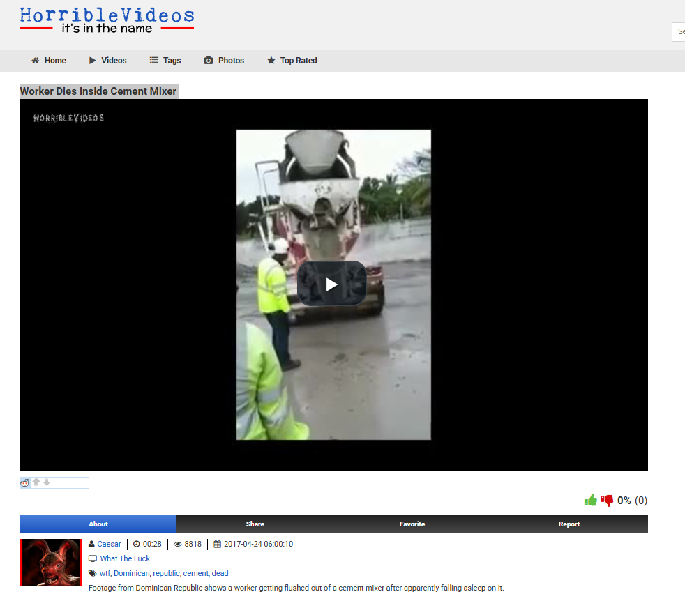 ভাইরাল ভিডিয়োটির একটি কি-ফ্রেমের রিভার্স ইমেজ সার্চ করলে দেখা যায় যে, ২০১৭ সালের, ২৪ নভেম্বর, Horriblevideos.com নামের একটি ওয়েবসাইটে, একই ছবি-সহ একটি ভিডিয়ো প্রতিবেদন প্রকাশিত হয়েছিল। ওই প্রতিবেদন থেকে জানা যায় যে, ডমিনিকান রিপাবলিকের একটি সংস্থার সিমেন্ট মিক্সার মেশিন থেকে এক শ্রমিকের দেহ উদ্ধার হয়েছিল।