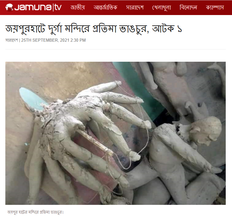 প্রশ্ন ১: জয়পুরহাটে প্রতিমা ভাঙচুরের ঘটনা কি সত্যিই ঘটেছে?