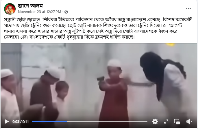না। দাবিটি ভুয়ো এবং কোনও প্রমাণ নেই যে বাংলাদেশে শিশুদের জঙ্গি প্রশিক্ষণ চলছে।
