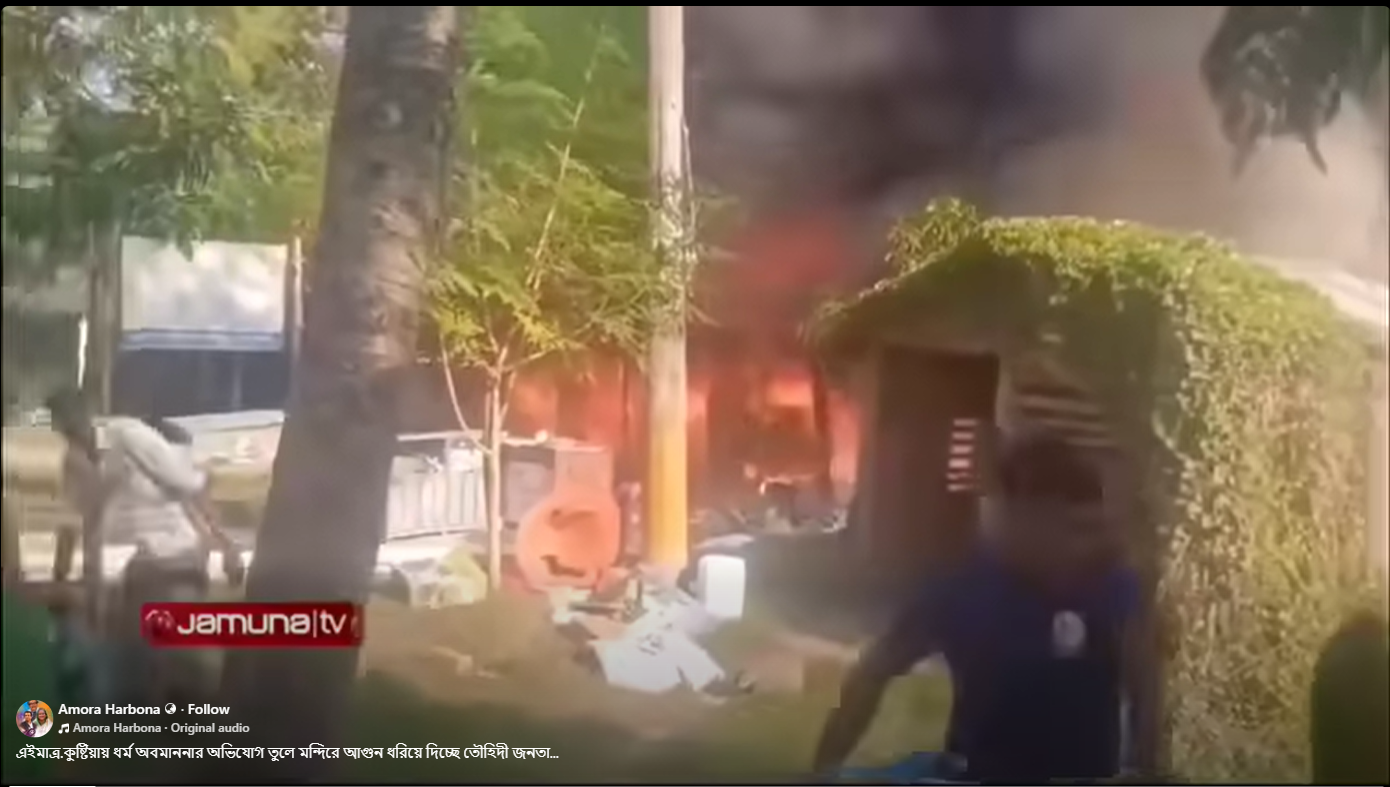 বাংলাদেশের কুষ্টিয়ায় হিন্দুদের মন্দিরে আগুন লাগিয়ে দিয়েছে তৌহিদী জনতা নামে সেদেশের একটি কট্টরপন্থী ইসলামি সংগঠন।