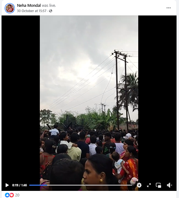 পোস্টটিতে, পুলিশ ৩০ অক্টোবর, নেহা মণ্ডল নামে একটি ফেসবুক অ্যাকাউন্ট থেকে করা লাইভ স্ট্রিমের স্ক্রিনশটও শেয়ার করেছে এবং দাবি করেছে যে এটি আসল ভিডিও।