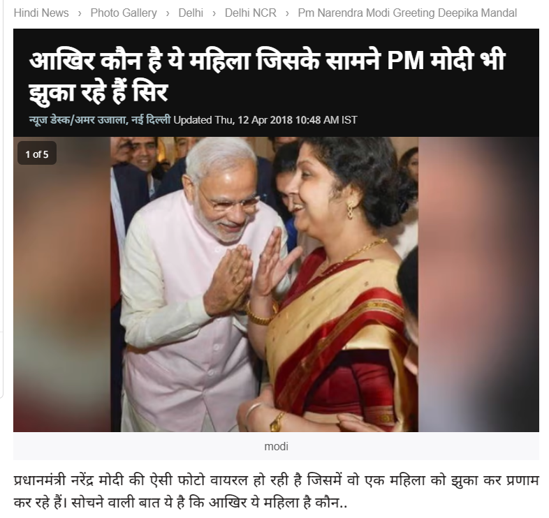 রিপোর্টে বলা হয়েছে মহিলাটি আসলে রাজধানী দিল্লিতে অবস্থিত একটি এনজিওর প্রধান পরিচালক নাম, দীপিকা মন্ডল। দিল্লির Divyajyoti Culture Organization and Welfare Society প্রধান পরিচালক। অমর উজ্বালাতে দীপিকার সাথে প্রাক্তন রাষ্ট্রপতি ডঃ এপিজে আব্দুল কালামের ছবি, রয়েছে অভিনেতা অমিতাভ বচ্চন ও বিদ্যা বালানের ছবিও।