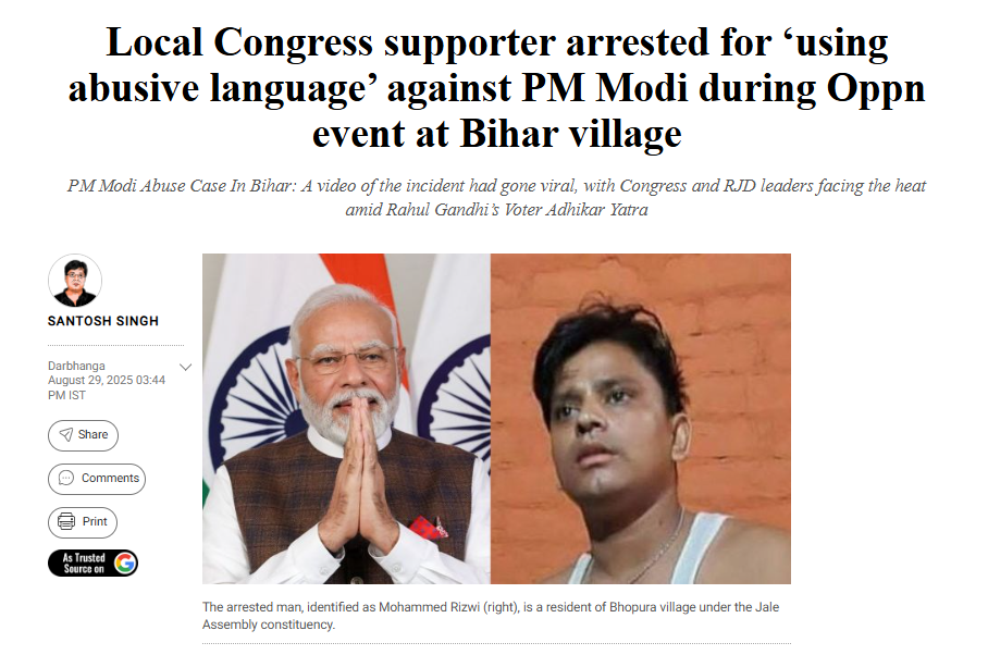 সহজভাবে বললে—ভাইরাল ছবিতে থাকা ব্যক্তি (নেক মহম্মদ রিজভি) সত্যিই বিজেপির কর্মী। কিন্তু তিনি মধ্যপ্রদেশে থাকেন, বিহারের ঘটনার সঙ্গে তাঁর কোনও সম্পর্ক নেই। বিভ্রান্তি তৈরি করতে তাঁর ছবিকে ঘটনাস্থলের অভিযুক্ত কংগ্রেস কর্মীর সঙ্গে গুলিয়ে দেওয়া হয়েছে।