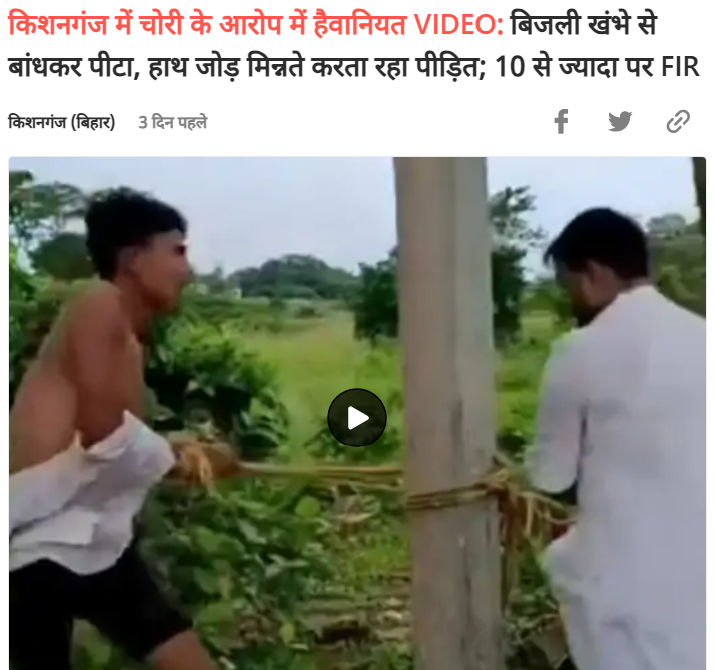 এক কিশোরকে হাত-পা বেঁধে মারধরের ভিডিয়ো সোশ্যাল মিডিয়ায় পোস্ট করে দাবি করা হয়েছে যে, সেটি উত্তরপ্রদেশের ভিডিয়ো এবং সেখানে চোর সন্দেহে এক হিন্দু যুবককে নির্মম ভাবে মারধর করেছে হিন্দুত্ববাদী সংগঠনের সদস্যরা।