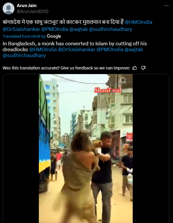 বাংলাদেশে একজন হিন্দু সন্ন্য়াসীকে বলপূর্বক ধর্মান্তরিত করছে মুসলিমরা।