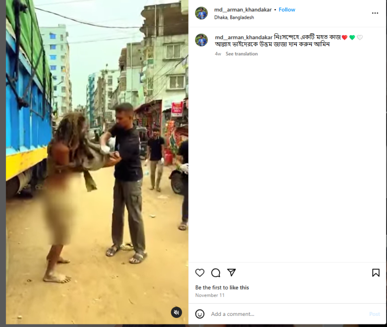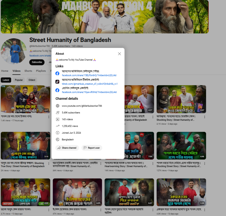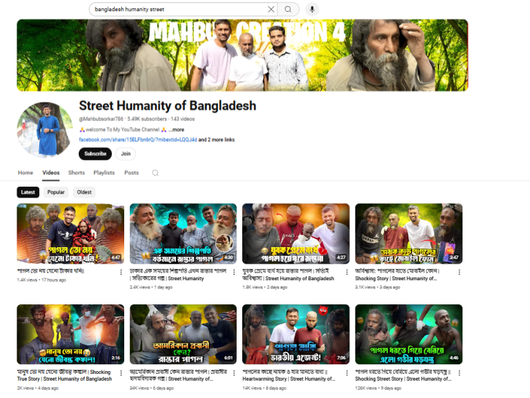 Video uploaded by Street Humanity of Bangladesh youtube account on 28th oct 2024