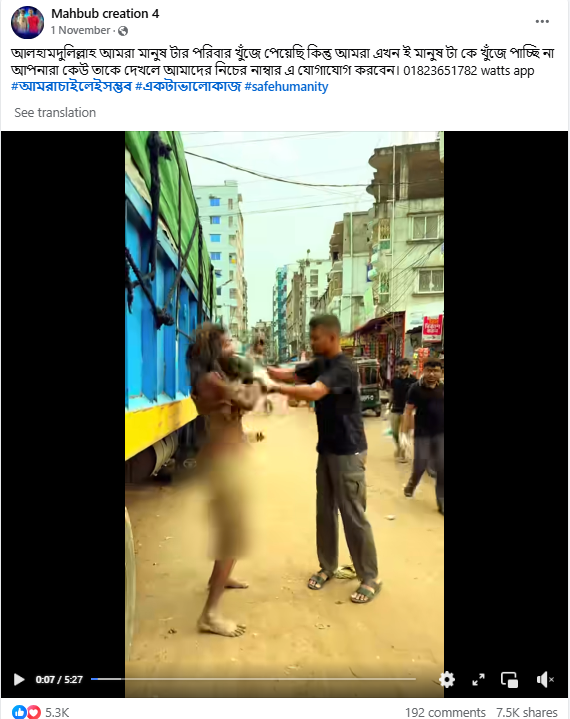 ওই ভিডিওতে দেখা যায়, রাস্তায় ঘুরতে থাকা এক ব্যক্তিকে ধরে প্রথমে তাঁর লম্বা চুল ও দাড়ি কেটে দেন কয়েকজন মানুষ। তারপর ওই ব্য়ক্তির নখ কাটানো এবং তাঁকে স্নান করানো হয়। পরিস্কার পোশাক পরিয়ে দেন উদ্ধারকারীরা। ভিডিয়োটিতে সাহায্য়কারী ব্য়ক্তিরা জানান, উদভ্রান্তের মতো ঘুরত থাকা ওই ব্য়ক্তিকে বাংলাদেশের ঢাকার কেরানীগঞ্জে এলাকায় উদ্ধার করা হয়েছিল। তাঁর বাড়ির খোঁজ দেওয়ারও আবেদন জানান তাঁরা।