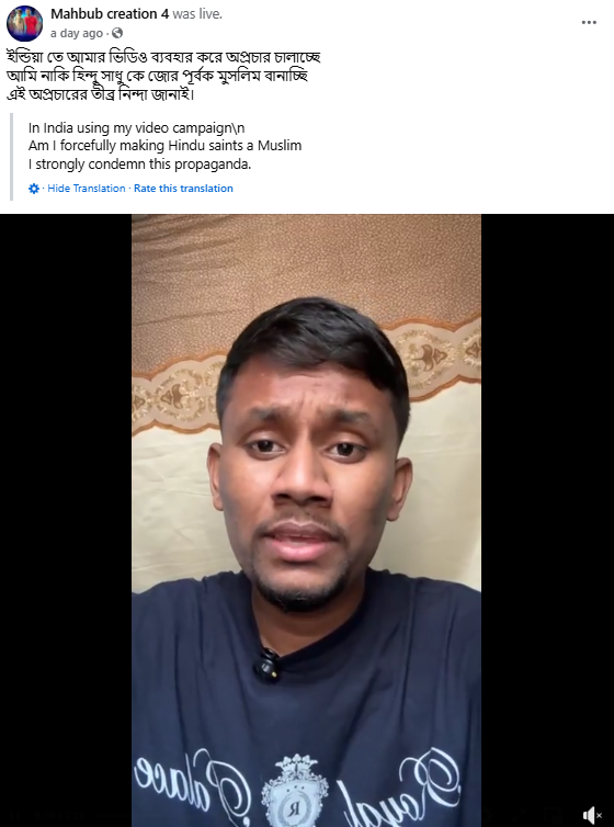 ৯ নভেম্বর একই ফেসবুক অ্যাকাউন্ট একটি লাইভ ভিডিয়ো দেখতে পাওয়া যায়। সেখানে ভাইরাল ভিডিয়ো এবং দাবিটি নিয়ে মুখ খোলেন এক সাহায্য়কারী। হিন্দু সাধুকে বলপূর্বক ধর্মান্তরিত করার দাবিটি উড়িয়ে দেন তিনি এবং জানান, উদভ্রান্তের মতো রাস্তায় ঘুরতে থাকা ওই ব্য়ক্তিটি একজন মুসলিম।