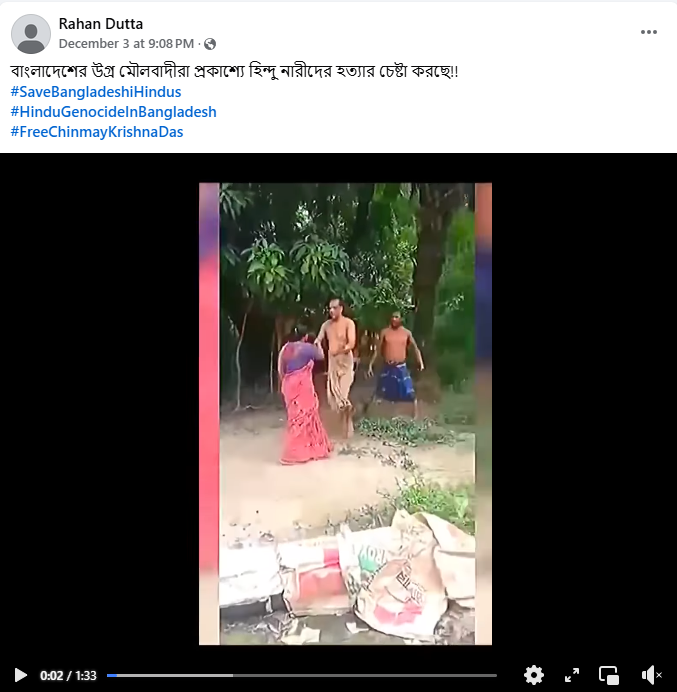 এটি বাংলাদেশের মৌলবাদীদের দ্বারা প্রকাশ্যে হিন্দু মহিলাদের হত্যার চেষ্টার ভিডিয়ো।