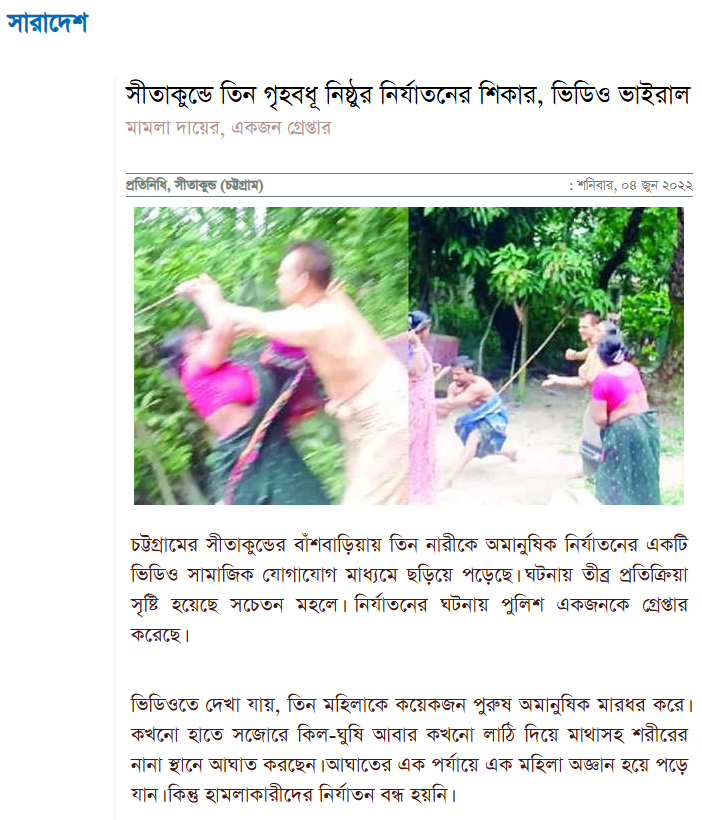 ভাইরাল ভিডিয়োর কি-ফ্রেমের রিভার্স ইমেজ সার্চ করলে দেখা যায় যে, বাংলাদেশের সংবাদমাধ্য়ম প্রথম আলোর ইউটিউব চ্য়ানেলে, ২০২২ সালের ৩ জুন একই ভিডিয়ো আপলোড করা হয়েছিল। যার শিরোনাম ছিল, “জাম পাড়াকে কেন্দ্র করে নারী নির্যাতনের অভিযোগ”। যেখানে বলা হয়েছিল যে, বাংলাদেশের সীতাকুণ্ডের বাঁশবাড়িয়ায় দুই মহিলাকে মারধর করা হয়েছিল। তাঁরা চট্টগ্রাম জেলা হাসপাতালে চিকিৎসাধীন ছিলেন।