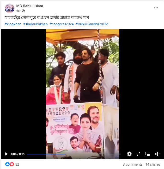 Claim: মহারাষ্ট্রের সোলাপুরে কংগ্রেস প্রার্থীর হয়ে প্রচারে নেমেছেন শাহরুখ খান।
