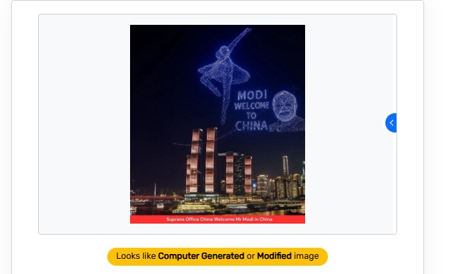 এখান থেকে স্পষ্ট যে, চিনে প্রধানমন্ত্রীর ছবি-সহ ড্রোন শোয়ের ছবিটি সত্যি নয়, ডিজিটালি তৈরি করা।