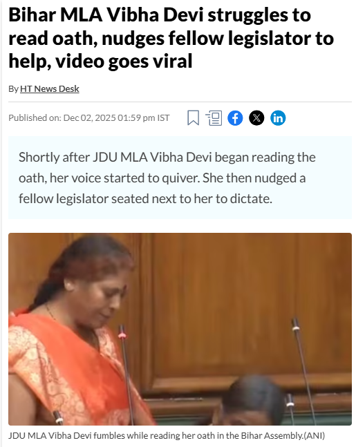 ভিডিয়োতে দেখা যাচ্ছে, হিন্দিতে শপথ গ্রহণের সময় তোতলাচ্ছেন বিহারের শিক্ষামন্ত্রী।