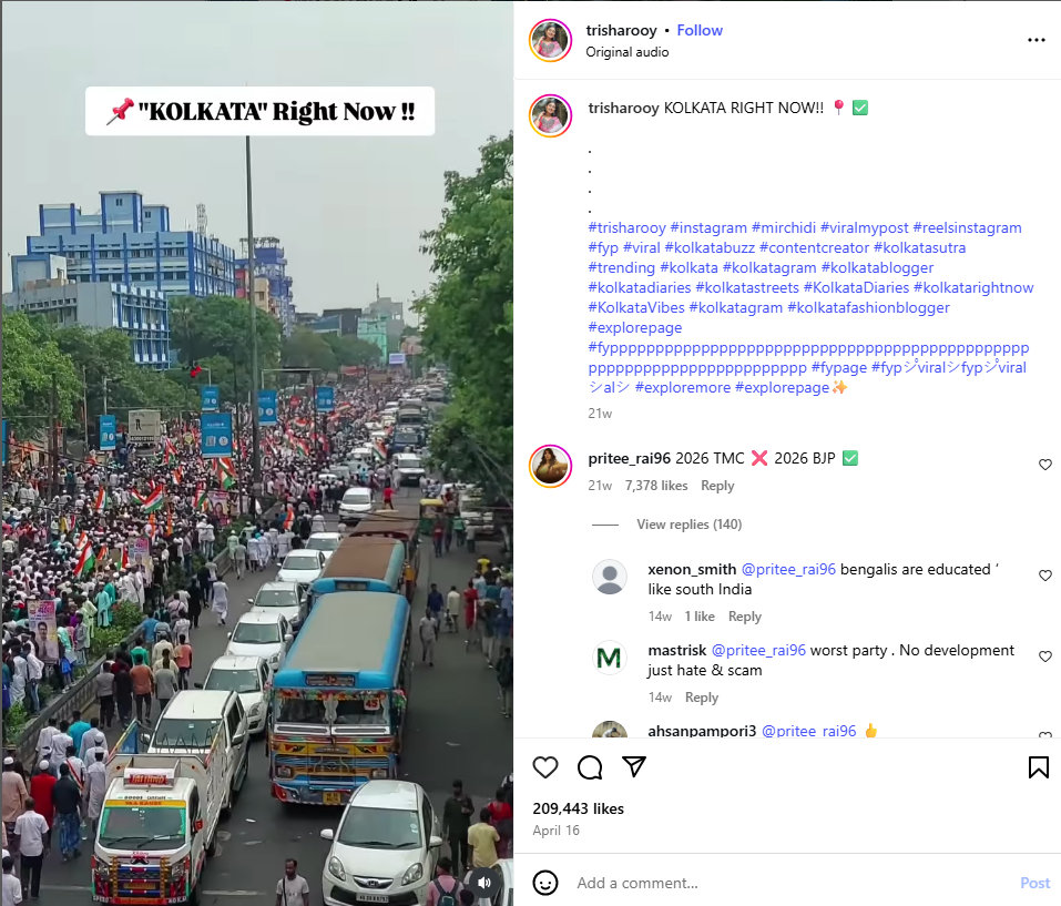 Video uploaded by IG account trisharooy on 14th April 2025