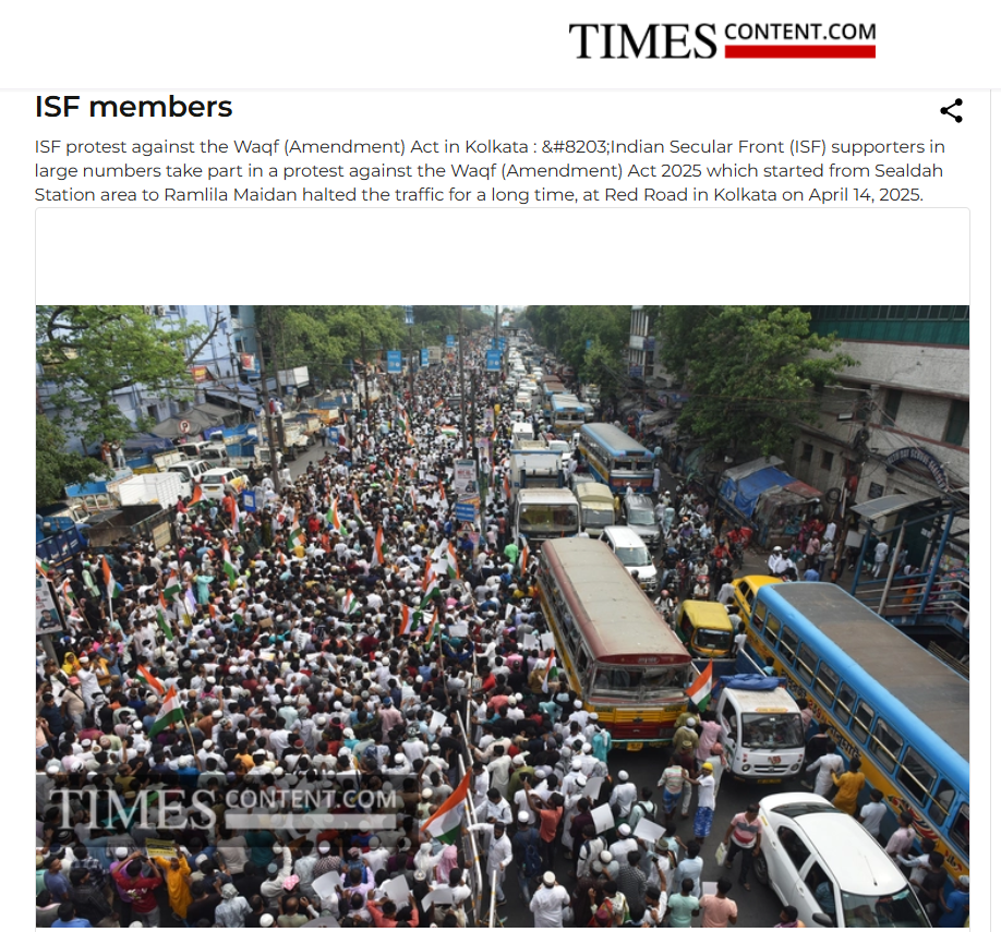 এছাড়া, ১৪ এপ্রিল, সংবাদ সংস্থা ANI-ও ইন্ডিয়ান সেকুলার ফ্রন্ট পরিচালিত বিক্ষোভের খবর প্রকাশ করেছিল।