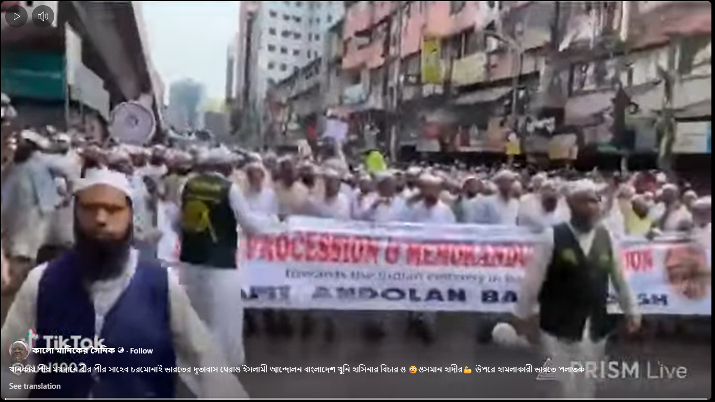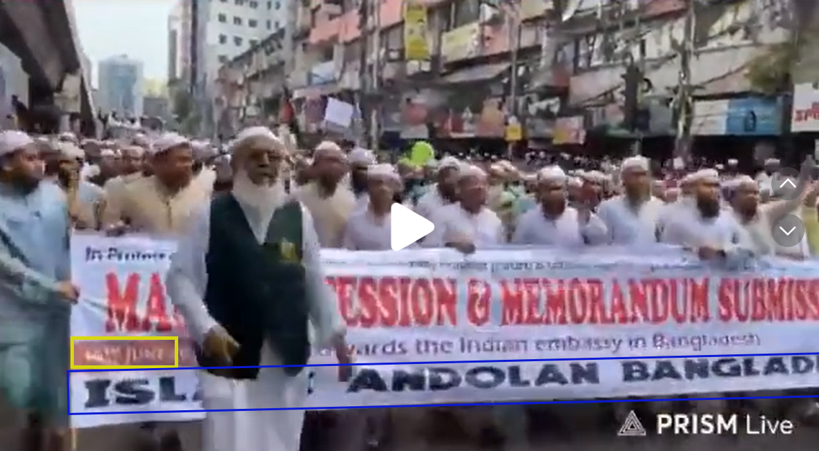 এই পরিস্থিতিতে সোশ্যাল মিডিয়ায় ছড়িয়েছে পড়েছে একটি বিশাল মিছিল ও জমায়েতের ভিডিয়ো। যা পোস্ট করে অনেকেই দাবি করেছেন যে, ওসমান হাদির হত্যায় অভিযুক্তদের এবং শেখ হাসিনাকে আশ্রয় দেওয়ার প্রতিবাদে, বাংলাদেশে অবস্থিত ভারতীয় দূতাবাস ঘেরাও করেছে জনতা। (আর্কাইভ লিঙ্ক)