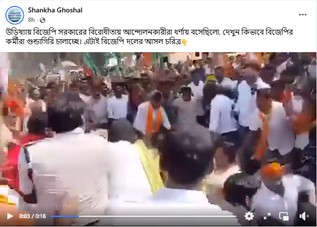 ভাইরাল ভিডিয়োটির একটি কি-ফ্রেমের রিভার্স ইমেজ সার্চ করলে দেখা যায় যে, ২০২৩ সালের পয়লা মার্চ, বিজেডি-র রাজ্যসভার সাংসদ সসমিত পাত্র একই ভিডিয়ো এক্স হ্যান্ডেলে পোস্ট করেছিলেন। বিজেপির সর্বভারতীয় সভাপতি জেপি নাড্ডাকে ট্যাগ করে অভিযোগ করেছিলেন যে, বিজেপির যুব মোর্চার কর্মীরা পুলিশের উপর হামলা করেছিল।