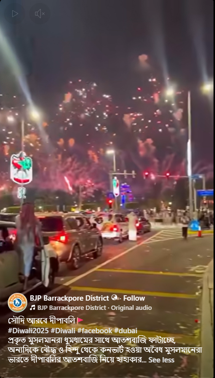 অতএব, ভাইরাল ভিডিয়োটি সংযুক্ত আরব আমিরাশাহি জাতীয় দিবস উদযাপনের, সৌদি আরবে দীপাবলি পালনের নয়।