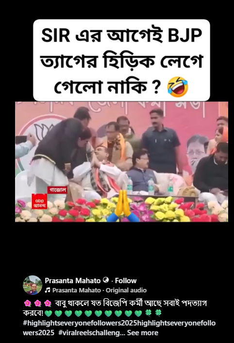 এখান থেকেই স্পষ্ট যে, মালদহের বিজেপি নেতার এই দলত্যাগের ঘটনাটি ২০২৩ সালের এবং সেটার সঙ্গে পশ্চিমবঙ্গের ভোটার তালিকার বিশেষ নিবিড় সংশোধনের (এসআইআর) কোনও যোগ নেই।
