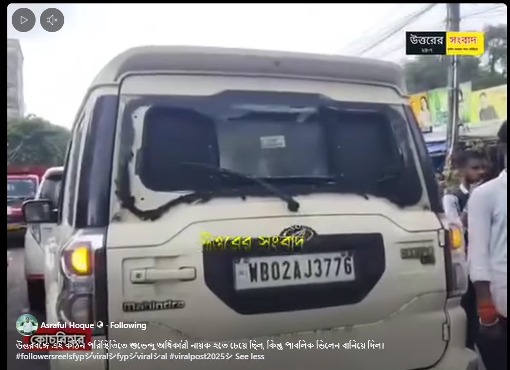 উত্তর: ভিডিয়োটি ২০২৪ সালের ৫ আগস্টের, কোচবিহারে শুভেন্দু অধিকারীর কনভয়ে হামলার সময়।
