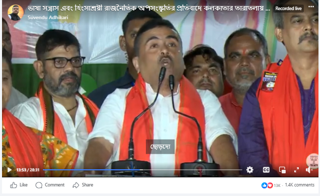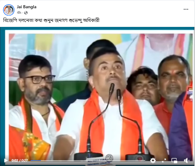 ভিডিয়োটি ফেসবুকে পোস্ট করে একজন লিখেছেন, “বিজেপি দলনেতা কথা শুনুন জনগণ শুভেন্দু অধিকারী”।