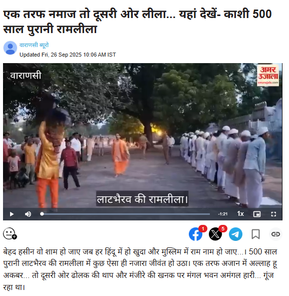 ওই প্রতিবেদন থেকে জানা যায় যে, অসাম্প্রদায়িকতা প্রচারের স্বার্থে, বেনারসের কাশীর লাট ভৈরব মন্দির প্রাঙ্গণে, প্রায় ৫০০ বছর ধরে একটি অনুষ্ঠান চলছে। যেখানে রামলীলা এবং নামাজ একসঙ্গে অনুষ্ঠিত হয়। ভিডিয়োটি সেই অনুষ্ঠানে।