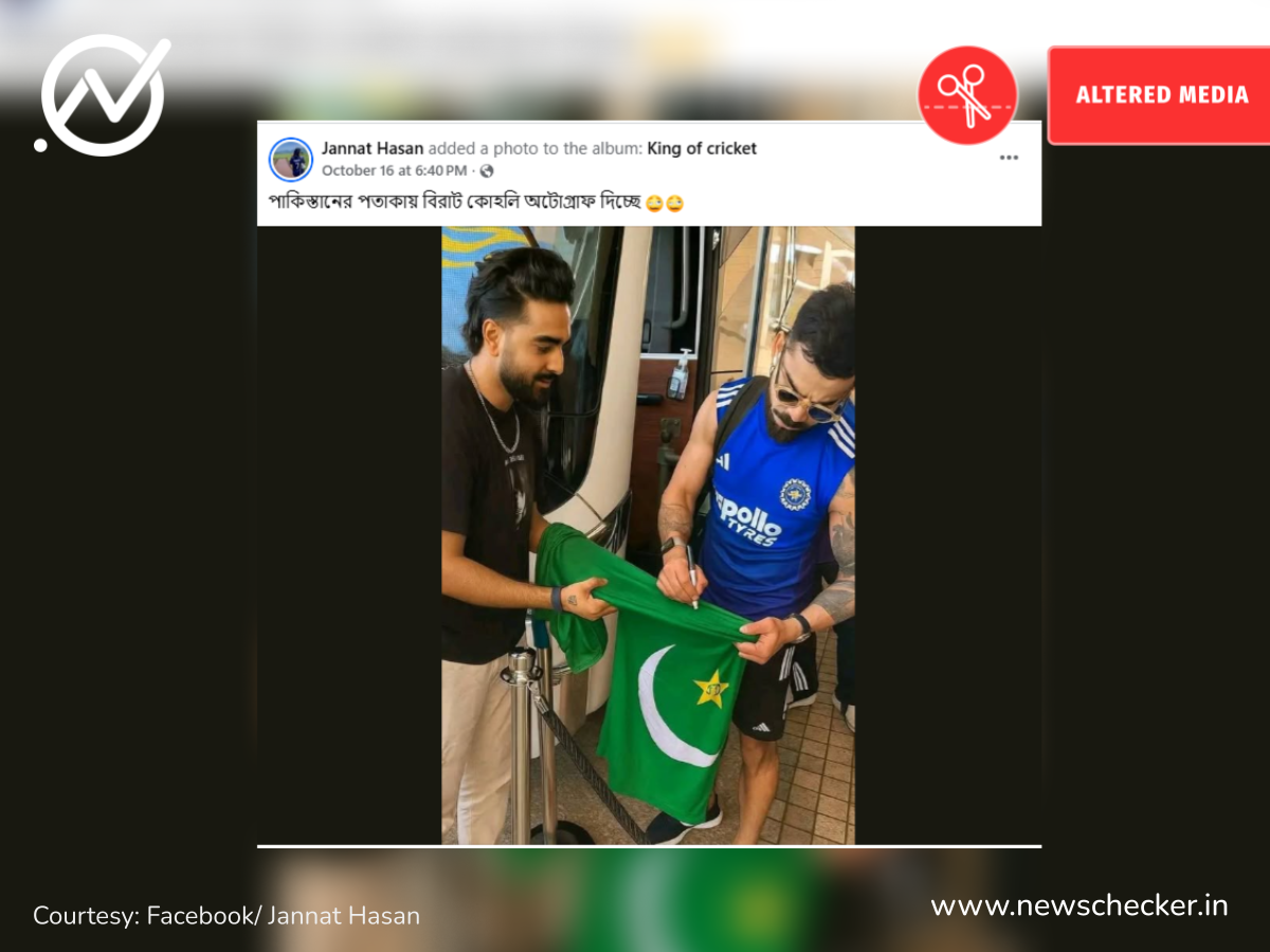 পাকিস্তানের পতাকায় বিরাট কোহলির সই করার ভাইরাল ছবিটি সত্য নয়, বরং কৃত্রিম বুদ্ধিমত্তা দ্বারা তৈরি।