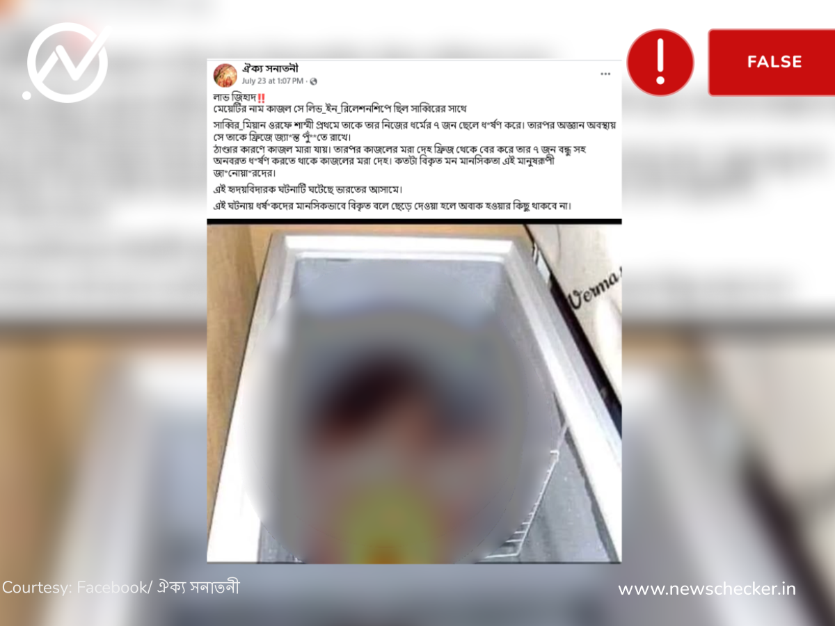 অসমের হিন্দু মহিলাকে খুন করে দেহ ফ্রিজার রাখল মুসলিম যুবক? ভাইরাল ছবির সত্যতা জানুন