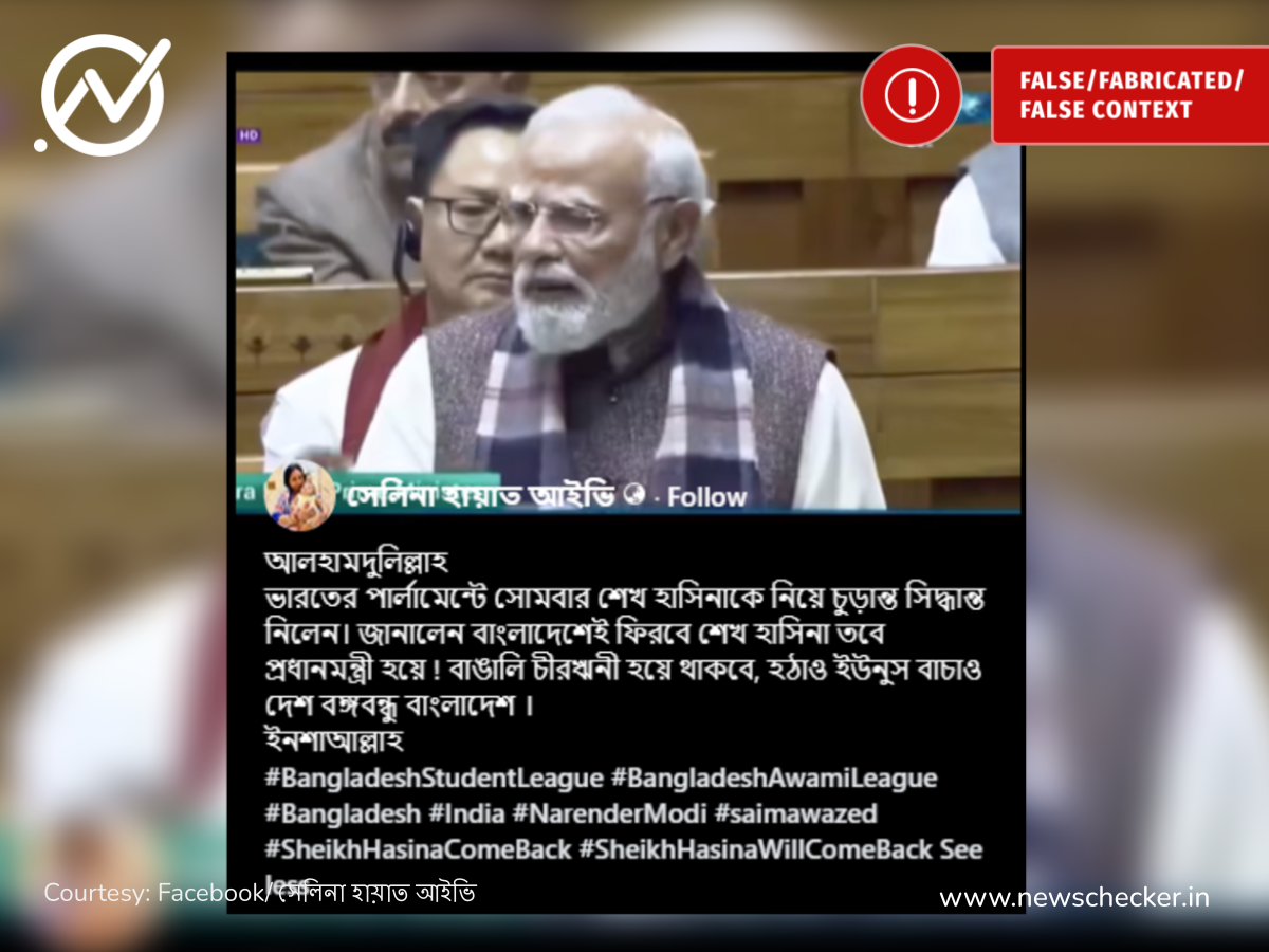 ভাইরাল দাবিটি ভুয়ো এবং শেখ হাসিনার দেশে ফেরা নিয়ে সংসাদে কোনও মন্তব্য করেননি প্রধানমন্ত্রী নরেন্দ্র মোদী।