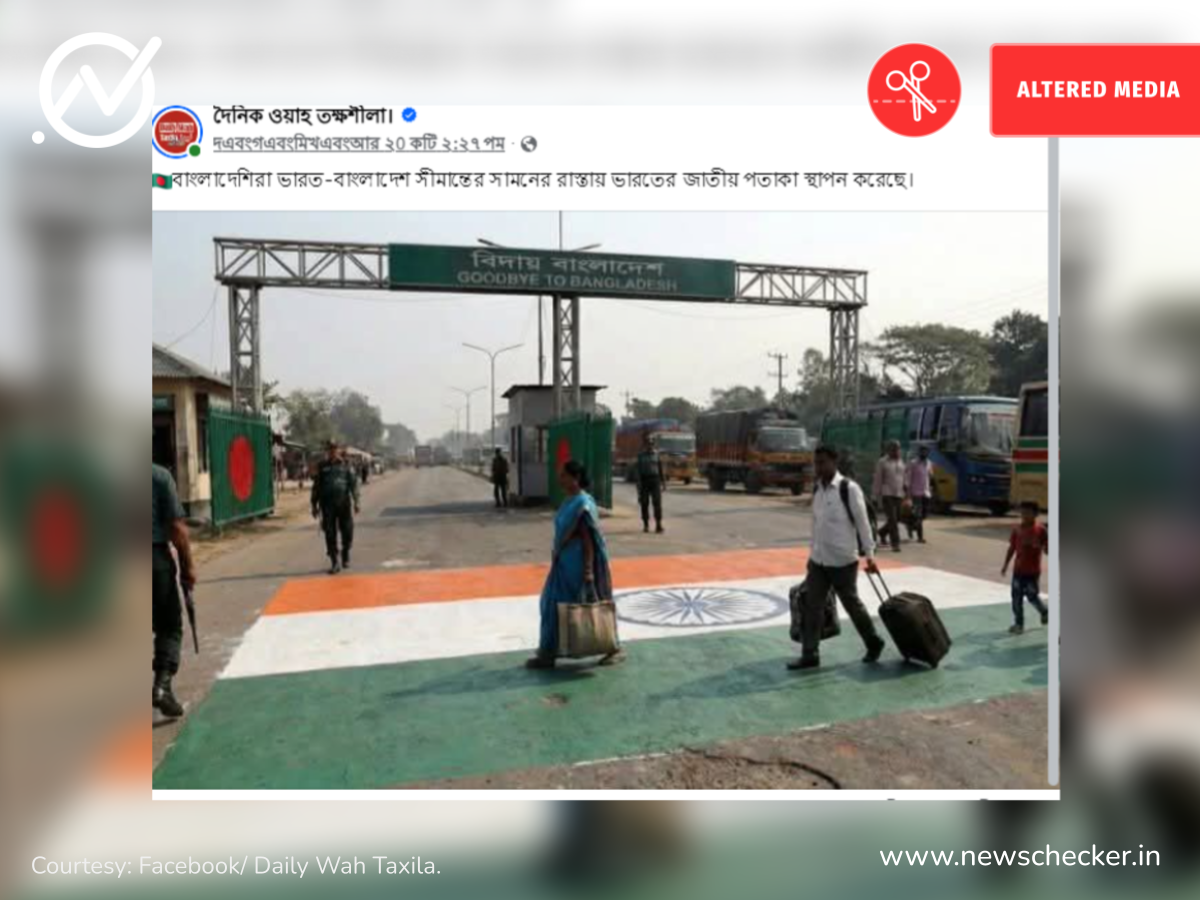 বাংলাদেশ সীমান্তের রাস্তায় ভারতের জাতীয় পতাকা স্থাপনের ছবিটি AI জেনারেটেড