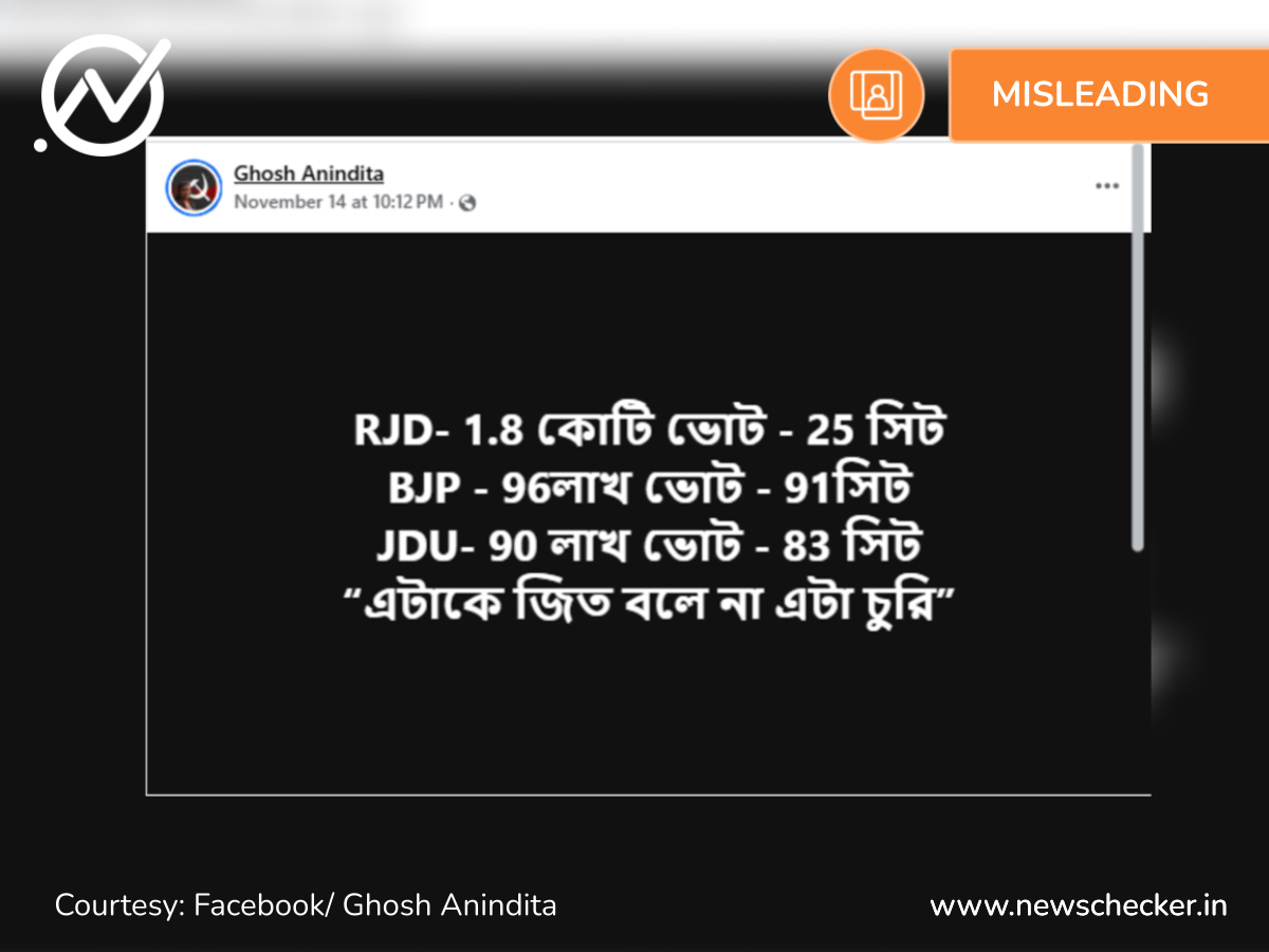 আরজেডি বেশি ভোট পেলেও, ‘ভোট চুরি’ করে বিহার জিতল বিজেপি-জেডিইউ? ভাইরাল দাবির সত্যতা জানুন