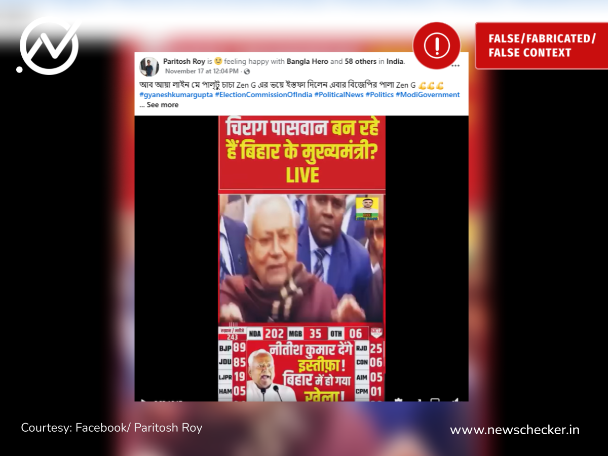 জেন জি আন্দোলনের জেরে নীতীশ কুমারের বিহারের মুখ্যমন্ত্রীর পদ থেকে ইস্তফা দেওয়ার খবরটি ভুয়ো এবং ভিডিয়োটি পুরোন।