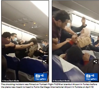 Viral video dates back to April 2021 when a brawl broke out over overhead lockers on a Tunisair flight at Istanbul airport.
