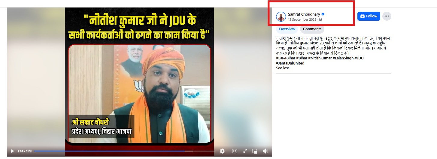 The full video was also found on Samrat Choudhary’s official Facebook page, posted on the same date. The caption accompanying the original post read: