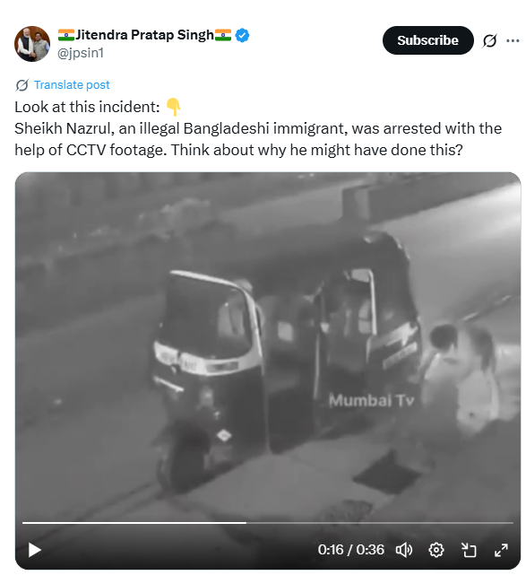 Sharing the video on X handle, one user wrote, “Look at this incident: Sheikh Nazrul, an illegal Bangladeshi immigrant, was arrested with the help of CCTV footage. Think about why he might have done this?”
