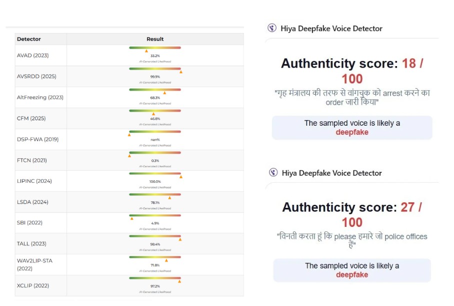 - Seven out of 12 detection models of Deepfake-O-Meter showed a high probability of AI manipulation, with some classifiers marking it 99–100% fake.