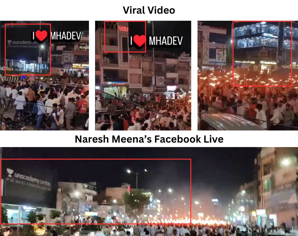 Upon reviewing Naresh Meena’s social media accounts, we located a recorded Facebook Live video dated September 25, which shows scenes identical to those in the viral video.