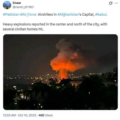 Videos and images show explosions in Afghanistan following a Pakistani airstrike in October 2025.