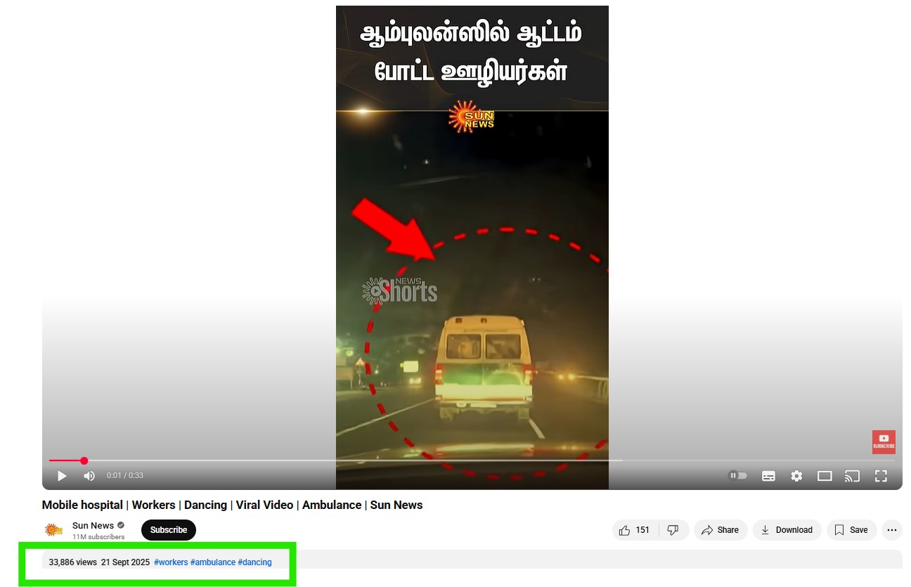 The video predates the Karur stampede. It shows hospital staff dancing inside an ambulance and has been available online since September 21, 2025.