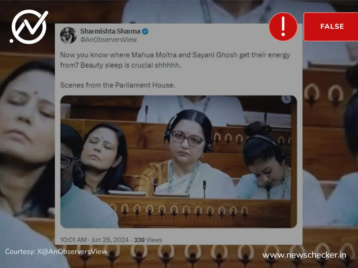 Several social media users are circulating a video, claiming it shows Trinamool Congress (TMC) MPs, Mahua Moitra and Saayoni Ghosh, dozing off during the inaugural session of the 18th Lok Sabha.