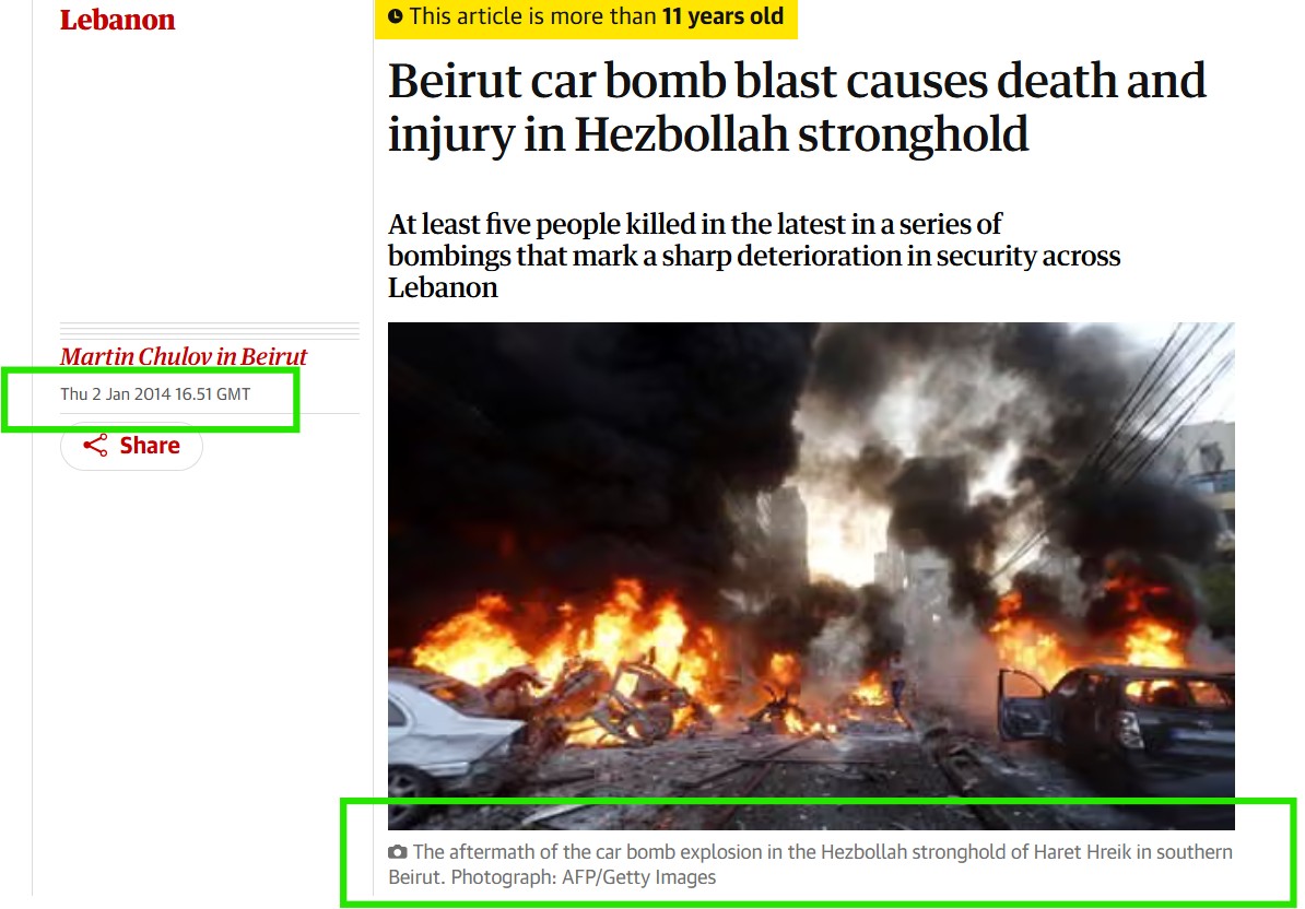 Multiple other media outlets (seen here, here and here) also reported on the blast in Lebanon in January 2014.