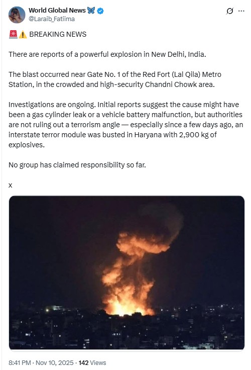 As news of a car blast near Delhi’s Red Fort on Monday, November 10, 2025, emerged, several images claiming to show the explosion went viral on social media. Newschecker investigated two such photos and found them to be old and unrelated to the recent incident in the national capital.
