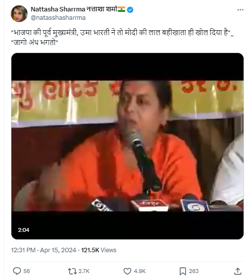 In a report dated April 17, 2024, NDTV stated that Uma Bharti had complained to the Election Commission after the Congress party had released the three-year-old video clip. Adding that Bharti said that she made the comments after she was expelled from the party. “Even America has changed its mind about Modi,” she was quoted as saying.