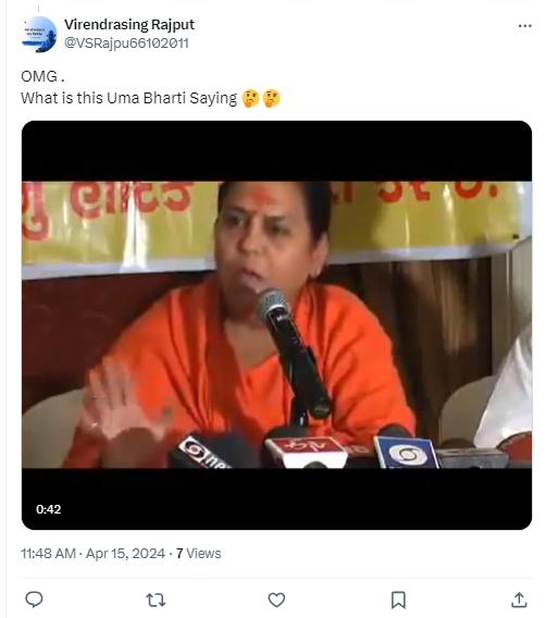 A report published in News18 on the video, dated April 17, 2014, stated, “Congress spokesman Abhishek Singhvi said the video was recorded in Gujarat a few years back, apparently when Uma Bharti had walked out of the BJP in a huff…Bharatiya Janata Party admitted that the video was not a fake by saying Uma Bharti was not in the party when she made these remarks.”